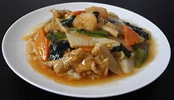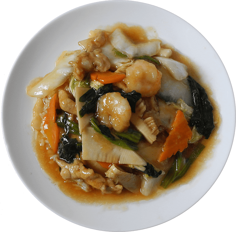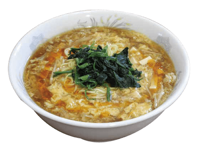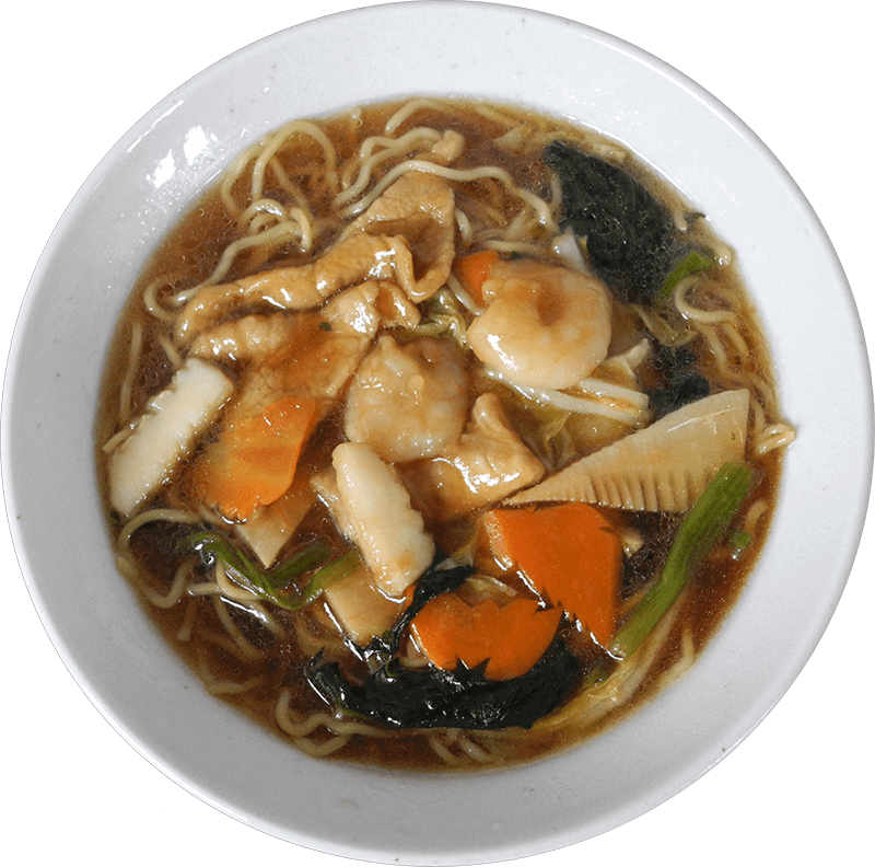 中華ラーメンの王道! 豚ロースに海老、イカ、ほうれん草を醤油ベースのあんで絡めた一品は、誰もが知る元日本代表サッカー選手も絶賛。創業当時から変わらない味わいです。
