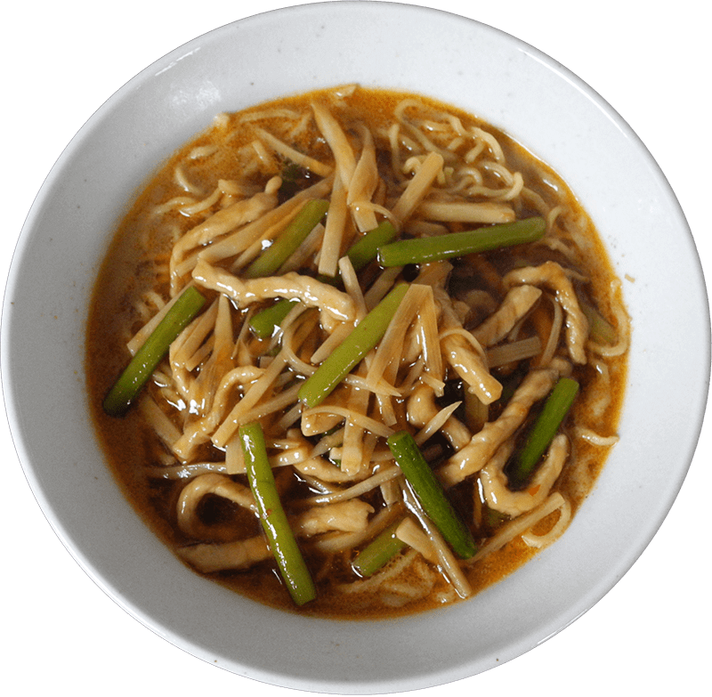 特製ごまペーストで豚ロースとニンニクの芽、たけのこを炒めたものをトッピング。ごまと素材の旨味が凝縮したコクのあるスープは、〆に白ご飯を入れるのもオススメ。