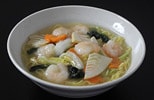 当店人気No.1。ぷりっぷりの海老と野菜がたっぷり入った、あっさり塩味のラーメンです。仕上げの特製ネギ油で、風味もUP。当店オリジナルの味わいを、ぜひ!