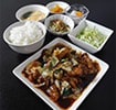 定食は、白飯・スープ・小鉢・サラダ・漬物・デザートが付きます。
